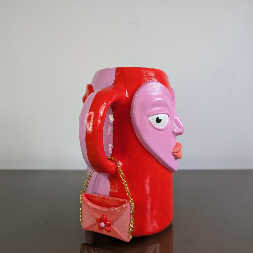 J’ai créé un vase double face au design unique, avec un visage de chaque côté formant un cœur. Son concept réversible lui donne une personnalité originale et expressive, idéale pour apporter du caractère à une décoration de salon.